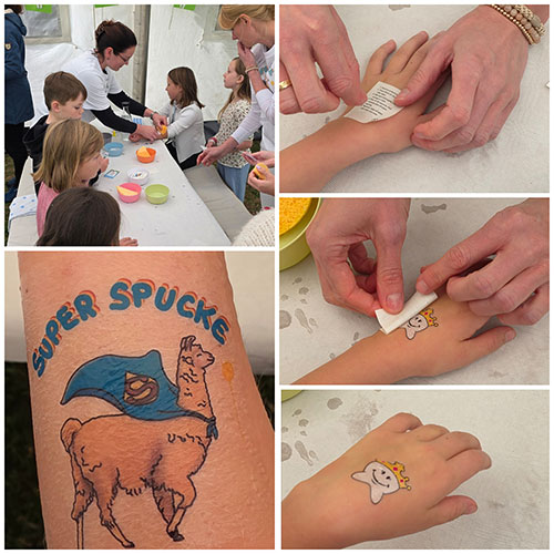 Im Praxisgarten erwartete die Schülerinnen und Schüler am Tag der Zahngesundheit dann ein abwechslungsreiches Programm: Spuckebomben-Wettwerfen, Geschmackbohnen erraten, Gerüche erkennen, Schminken, Lama-Tattoos und Ballonkunst. Auch die Zahnfee (unsere Mitarbeiterin Anna-Lena Steppuhn) war mit dabei. Ein Highlight war der Besuch der Alpakas Christiano und Silver von der „Silver Edition“ Alpakas-Zucht. Die Kinder überraschten uns zudem mit einem Lied und einem Rapsong zum Thema Zähneputzen und weiße Zähne!